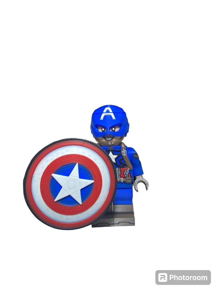 3D printed plastic Big Brick Lego Captain America figurine. Stand around 8 inches tall