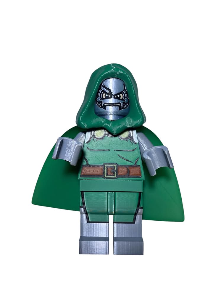 3D printed plastic Big Brick Lego Doctor Doom figure. Stands around 8 inches tall.