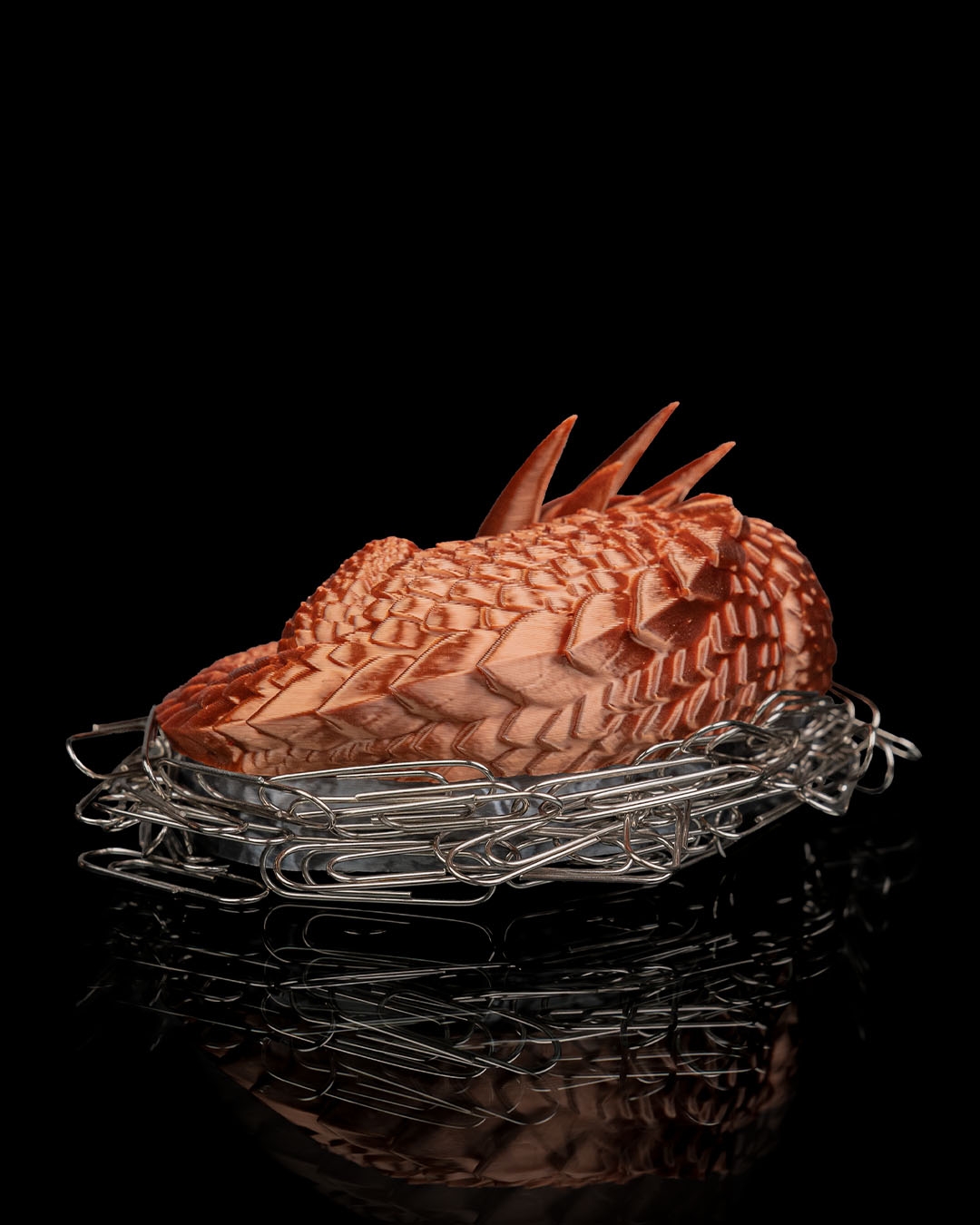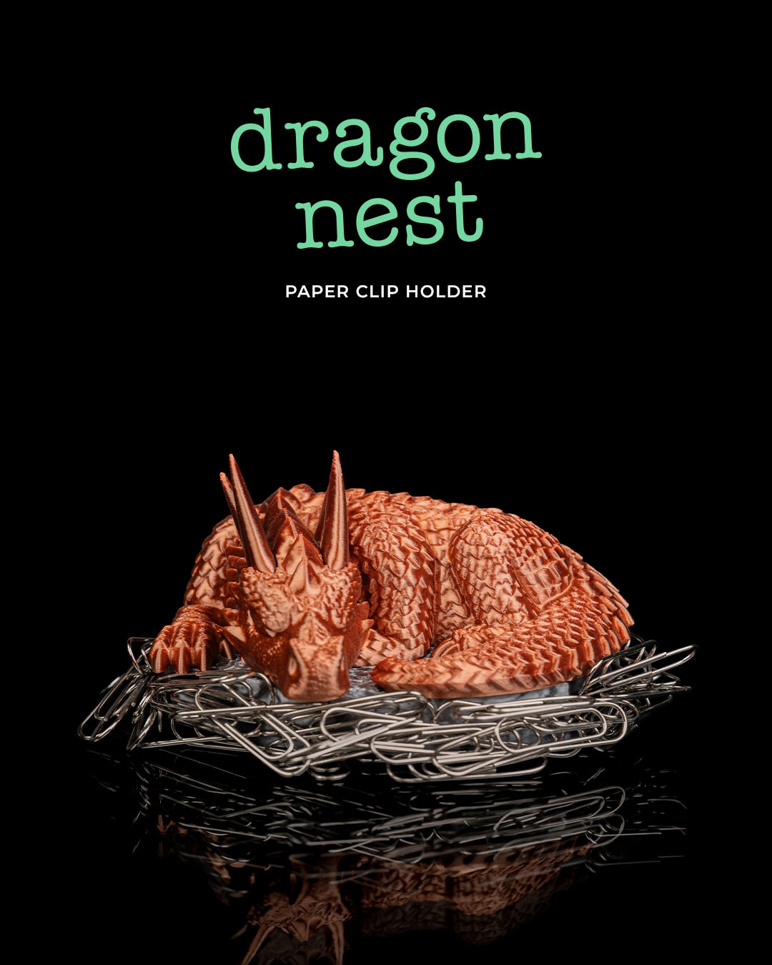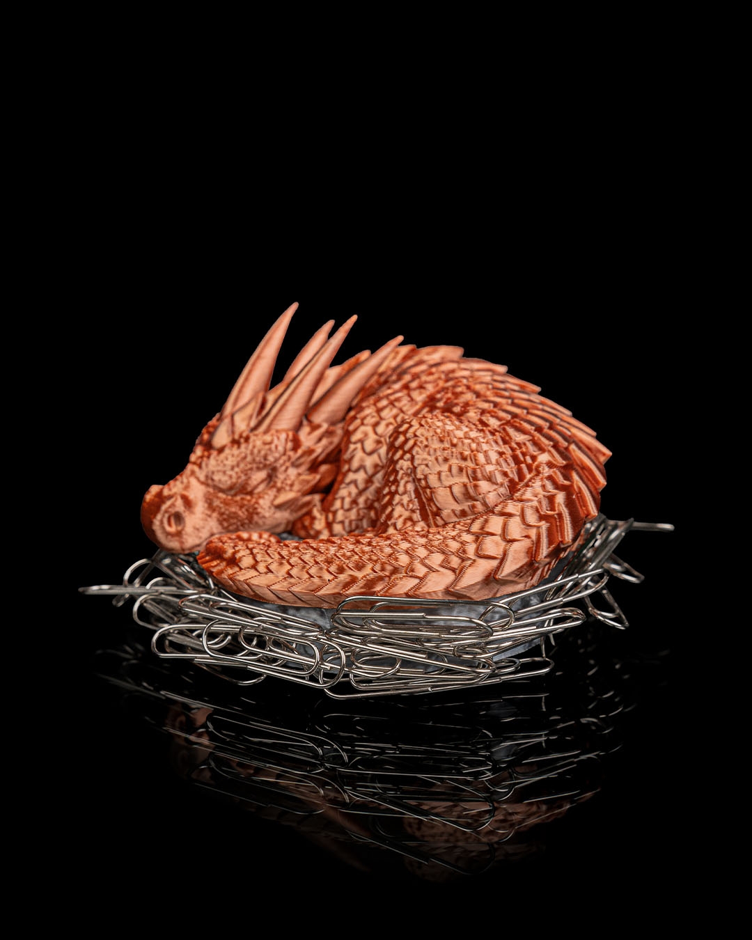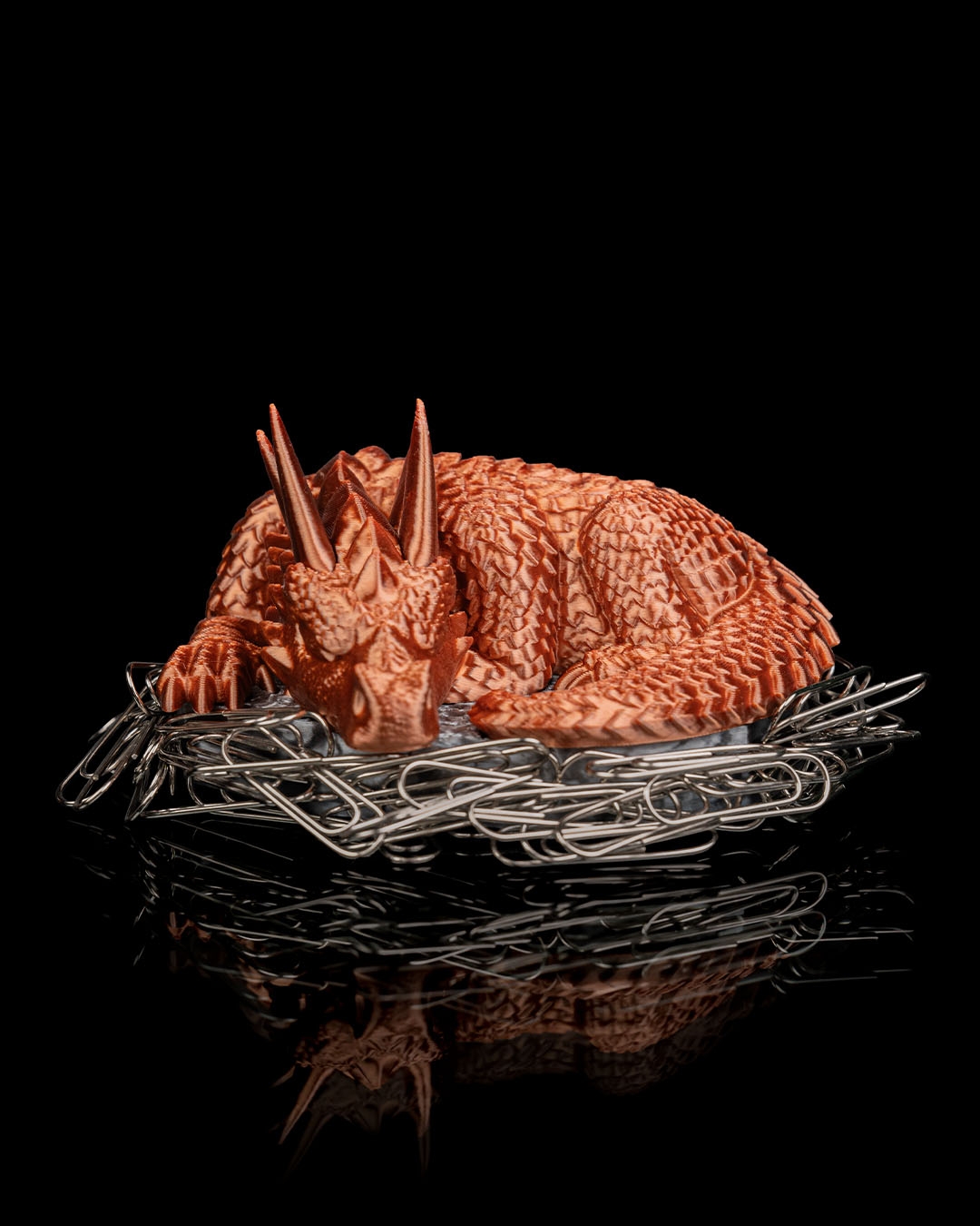 Todo el mundo sabe que los dragones acumulan tesoros. Este en concreto se ha decidido por cualquier cosa magnética y se ha mudado a tu excritorio para mantener los clips y grapas protegidos.