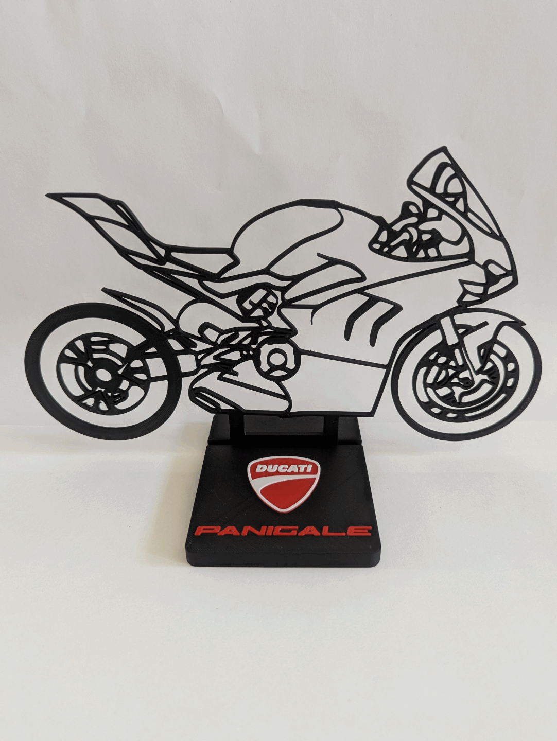 Acabamento Premium: Acompanha uma base elegante com o logotipo da Ducati e o nome “Panigale” em relevância, garantindo estabilidade e um visual imponente.