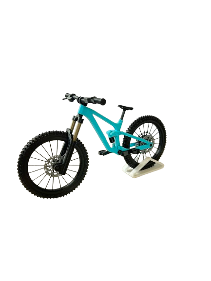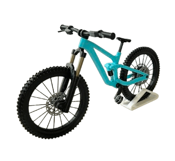 Take your love of off-road biking to a new level with this detailed miniaturised full suspension enduro mountain bike model. 3D printed with high-quality, eco-friendly PLA filament, it features working front and rear suspensions, rotating wheels and pedals — every linkage mimics the mechanics of a real MTB, offering both visual authenticity and tactile fun.
