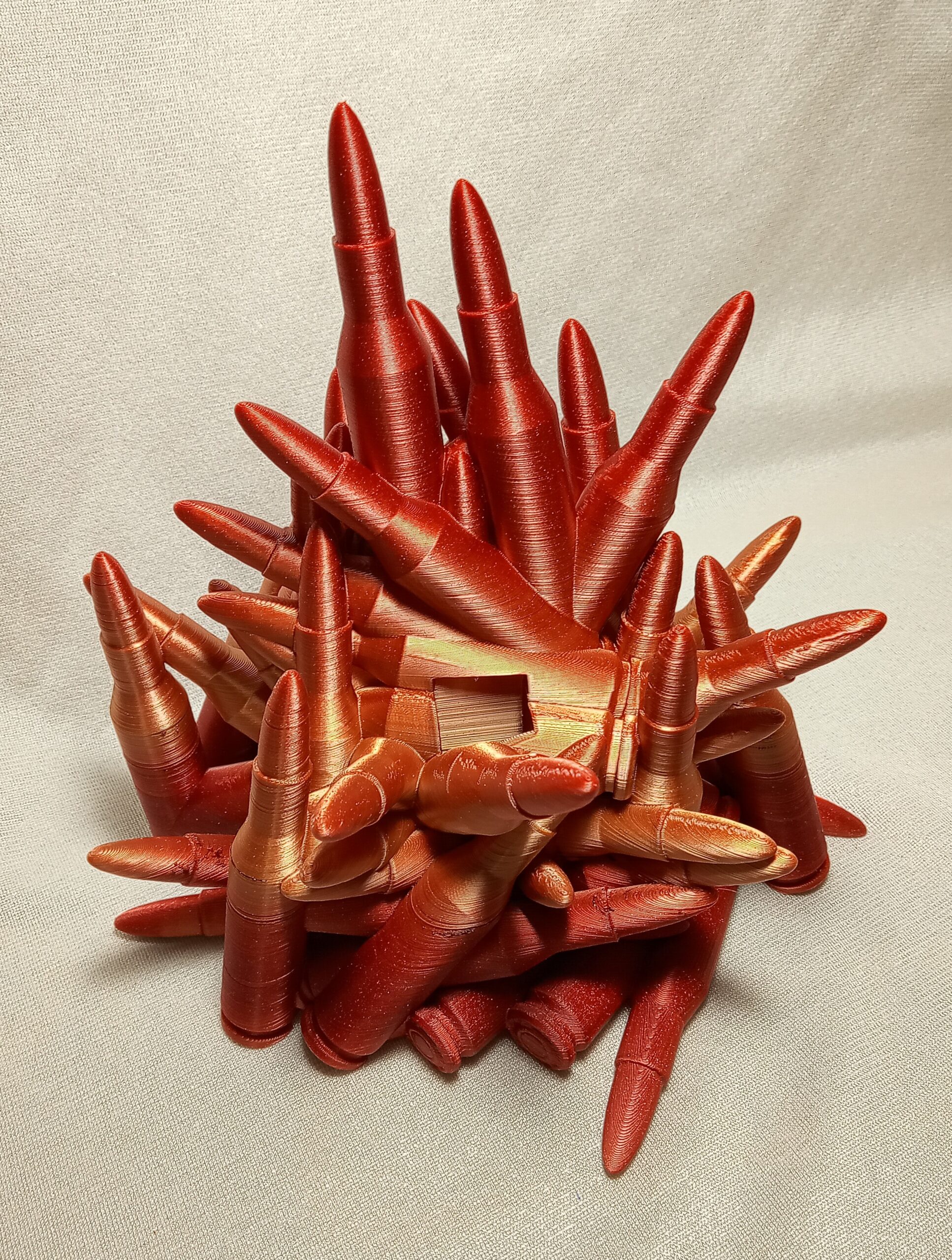 Put your phone on this pile of ammo. Has opening for cord. Printed in Red/Gold filament