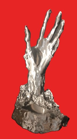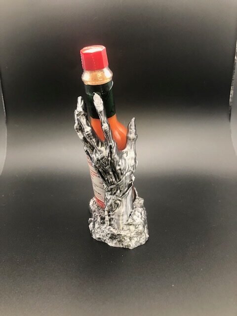 This hand has risen up to hold your 2 oz hot sauce. Printed with grey/silver filament. Sauce not included 3.75″ tall