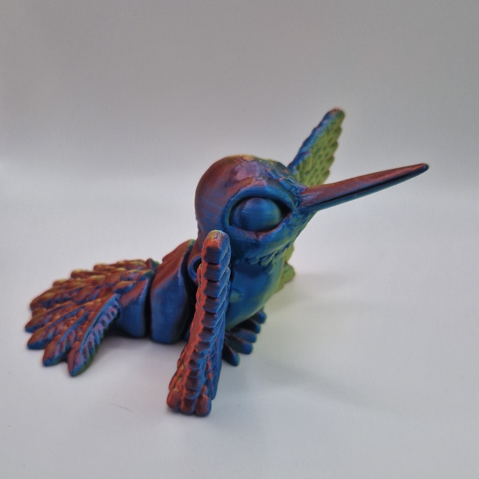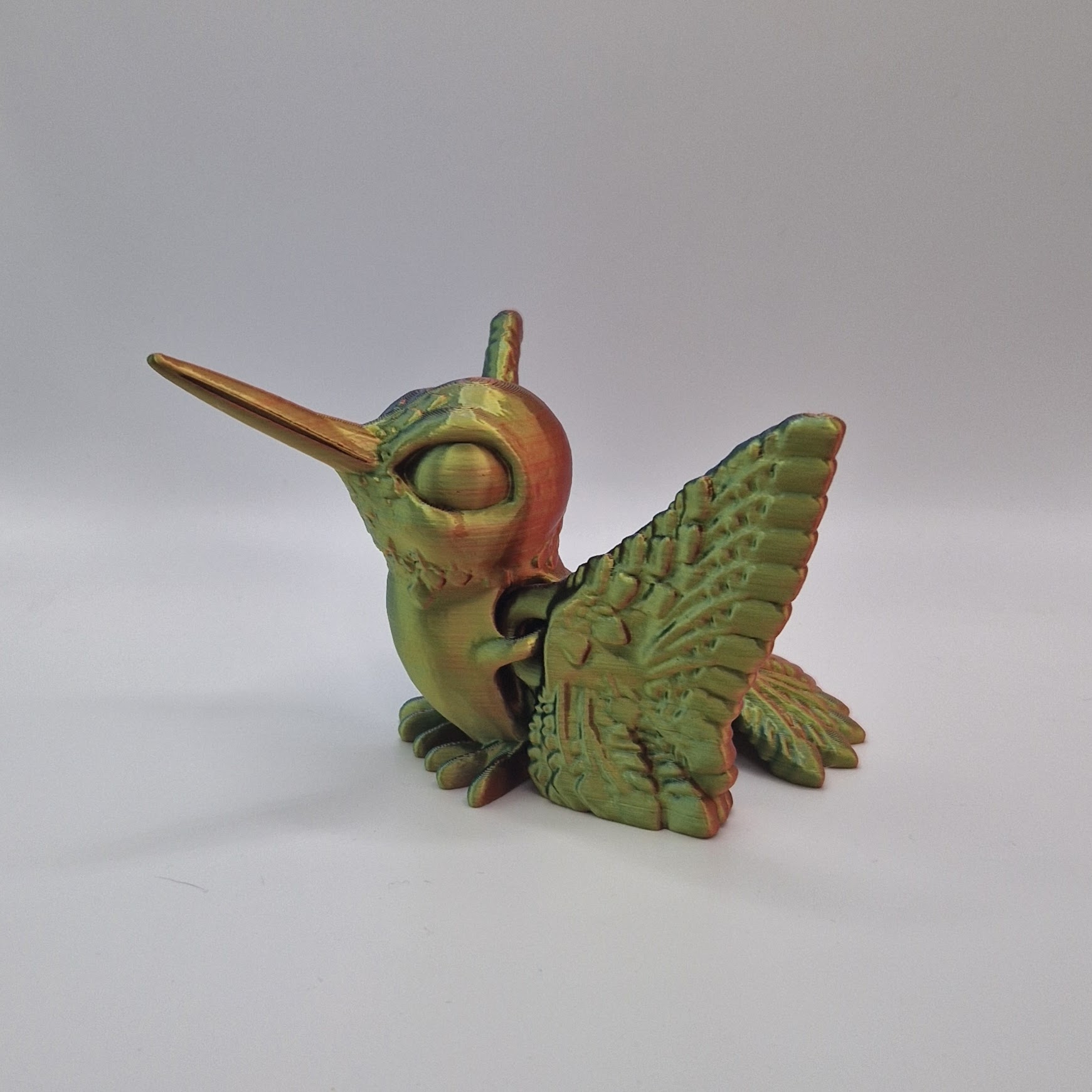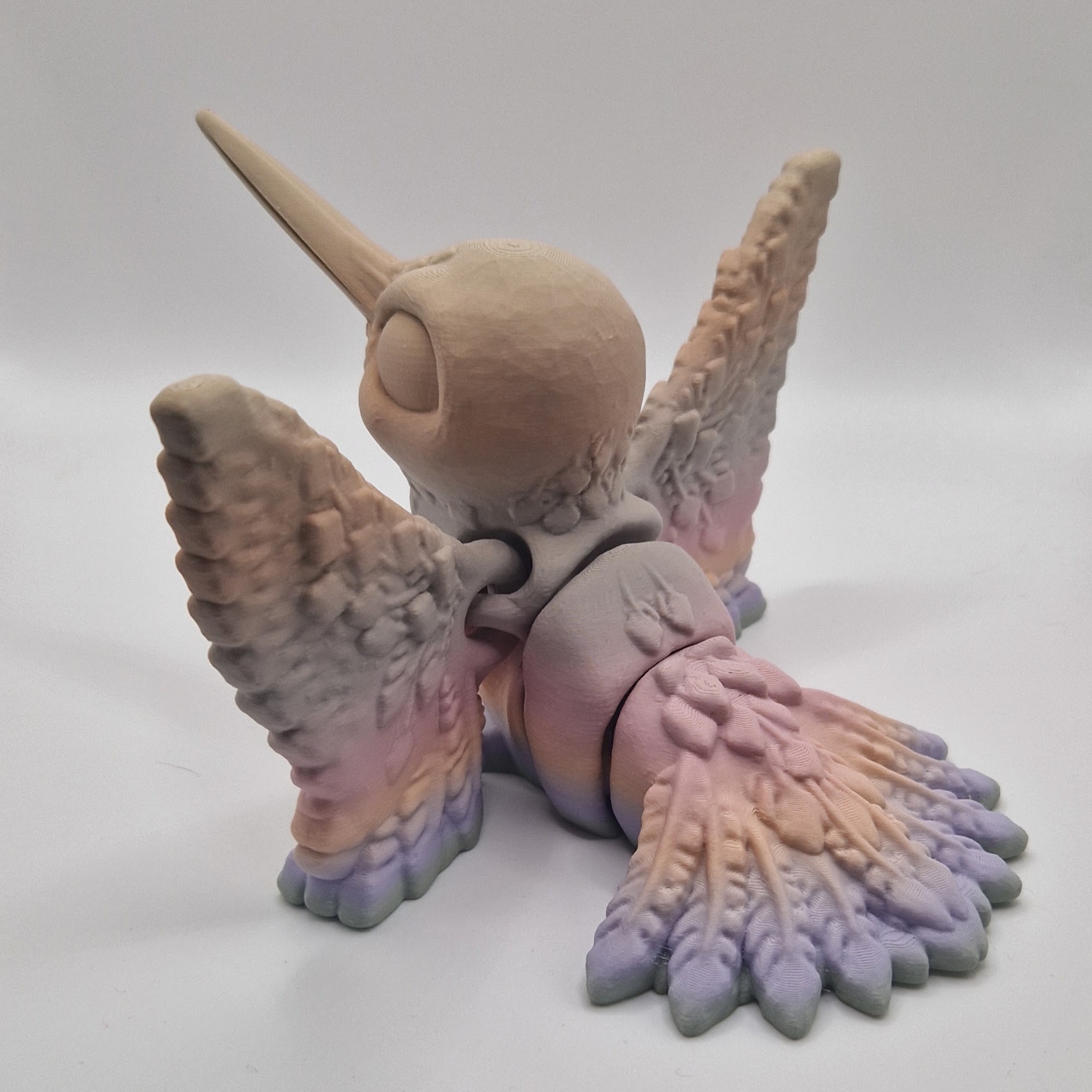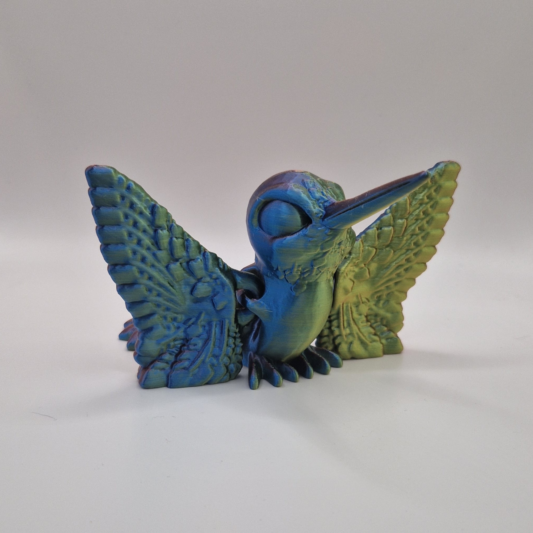 Introducing our adorable 3D printed hummingbird toy! This articulated design allows the bird to move and flap its wings just like a real hummingbird. Crafted with attention to detail, this cute toy is perfect for kids and adults alike. Place it on your desk, shelf, or hang it as a unique decoration. Made with high-quality materials, this hummingbird is durable and sure to bring joy to your space. Get yours today and add a touch of whimsy to your home or office!