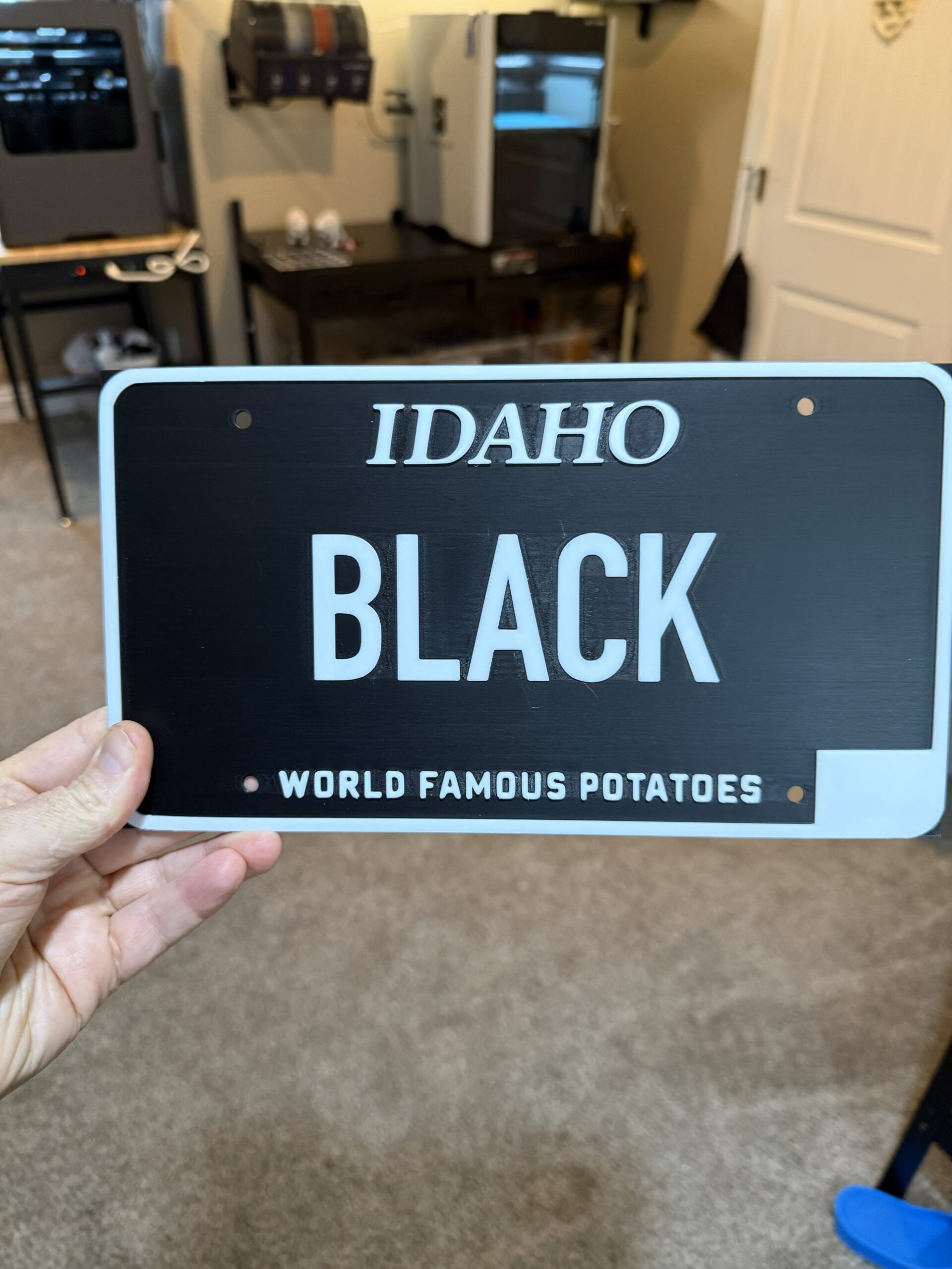 Custom Idaho License Plate.  Used for decoration. This is a 3D Printed sign.