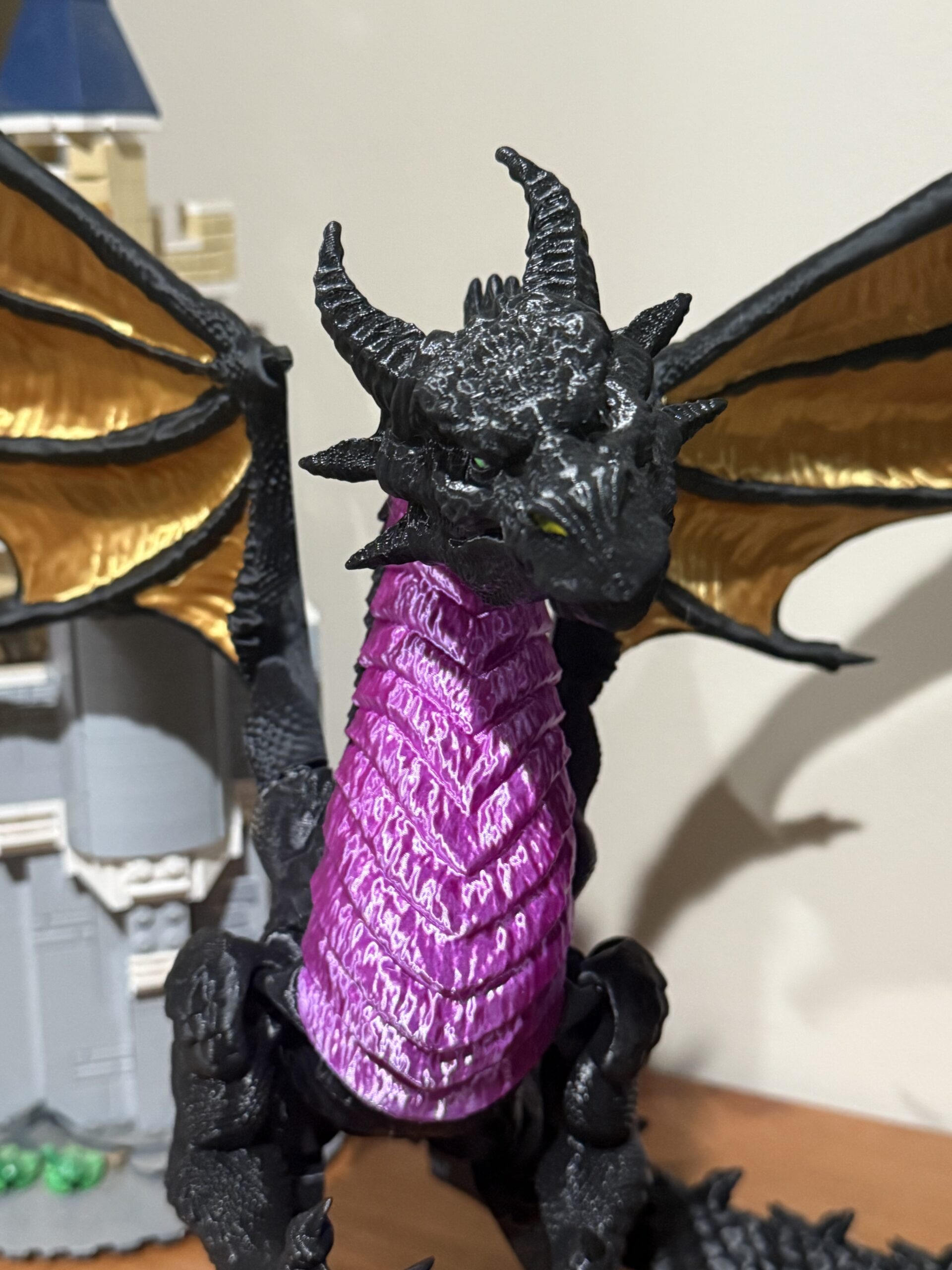 This amazingly detailed dragon looks a lot like the one in the Disney movie! My husband brought it home and immediately knew that the best place for it was right next to the Lego Disney castle I had built. It is definitely a conversation starter in our home!