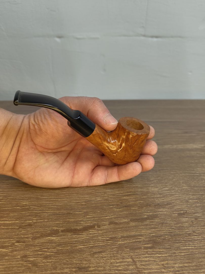 Die Oberfläche dieser edlen Pfeife ist in goldteak gebeizt, was das Holz dunkler und wärmer gestaltet. Glänzend lackiert verleiht es ihr einen luxuriösen Glanz und unterstreicht gleichzeitig die natürliche Schönheit des Holzes. Im Inneren bleibt die Pfeife unbehandelt, um das authentische Aroma deiner Lieblings-Tabaksorten vollständig zur Geltung zu bringen.