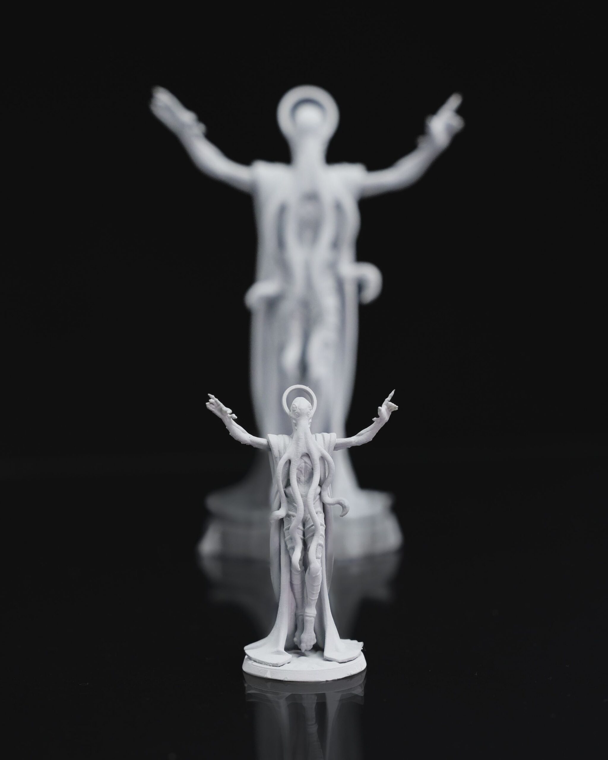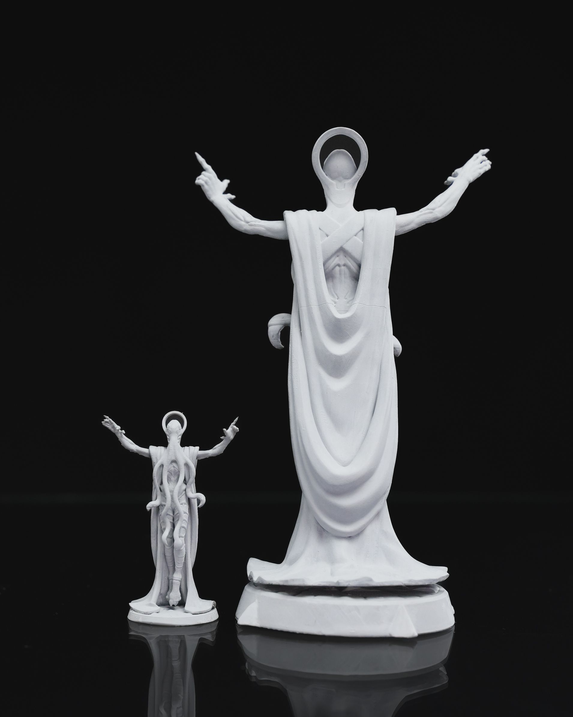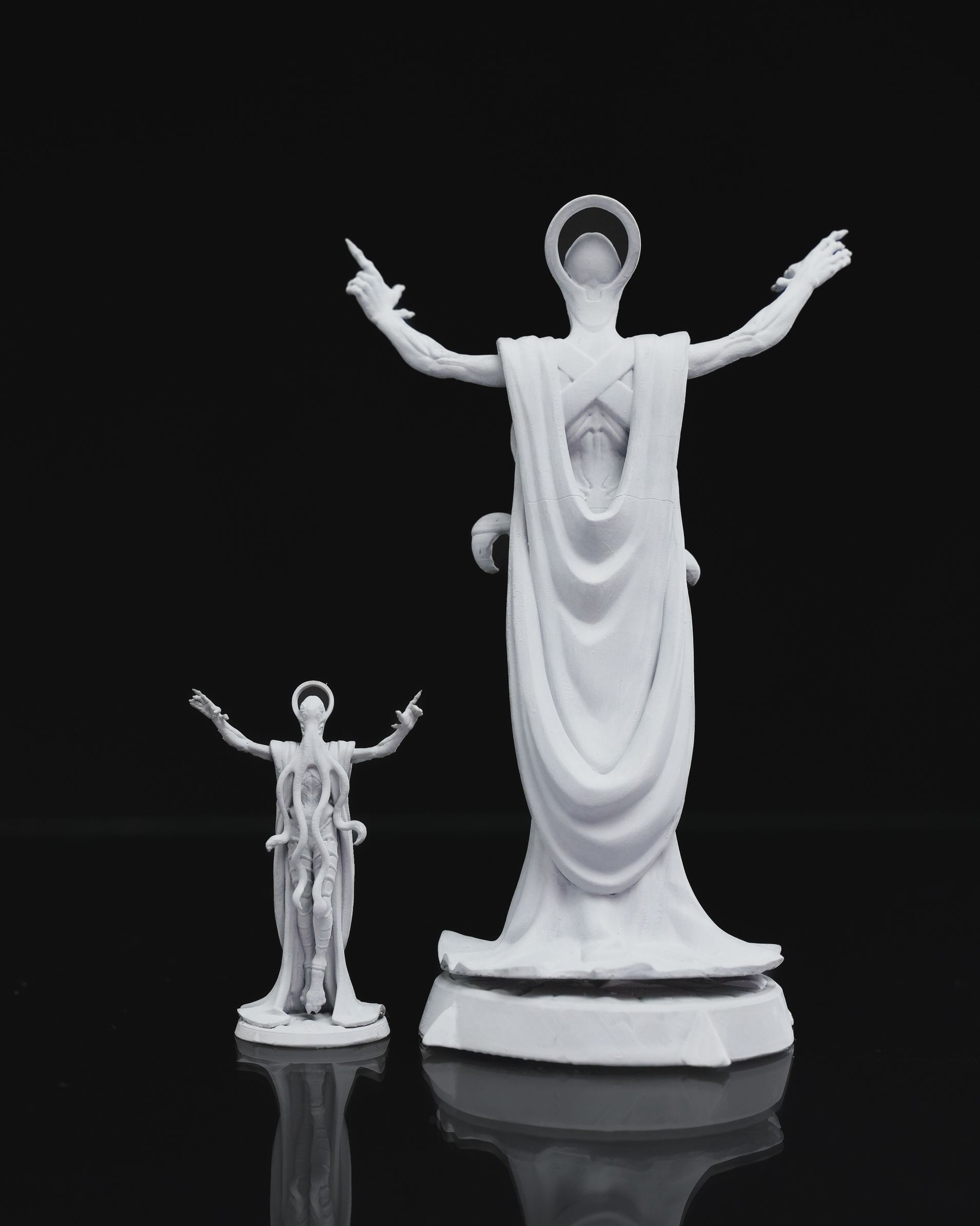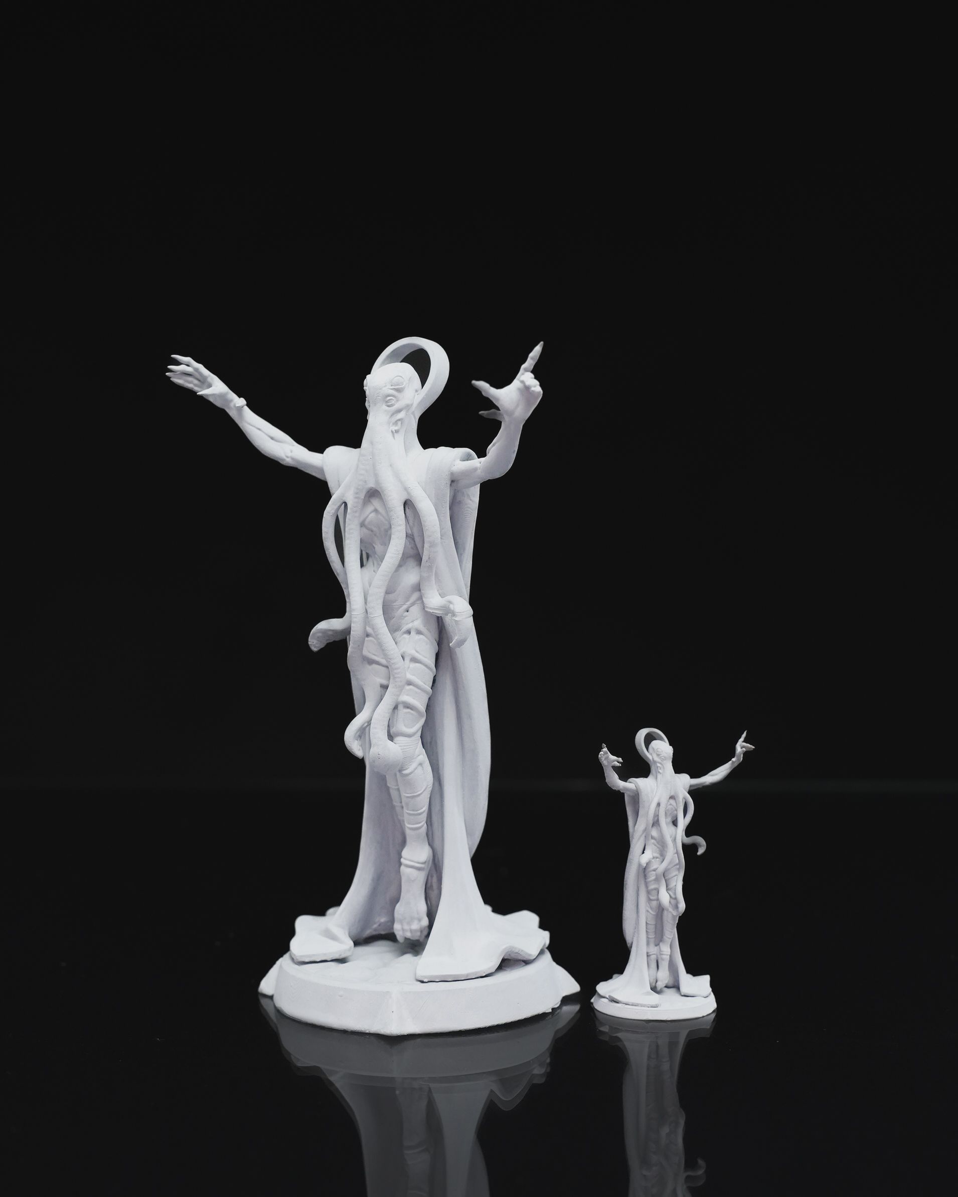 Support structures are carefully selected to ensure optimal print quality while protecting delicate details. Due to the nature of resin printing, minor imperfections such as pitting, small chips, or subtle scratches may occur during support removal. Some miniatures may require light sanding or touch-ups for any residual support marks. In select cases, certain supports may be left attached to protect fragile elements during shipping.