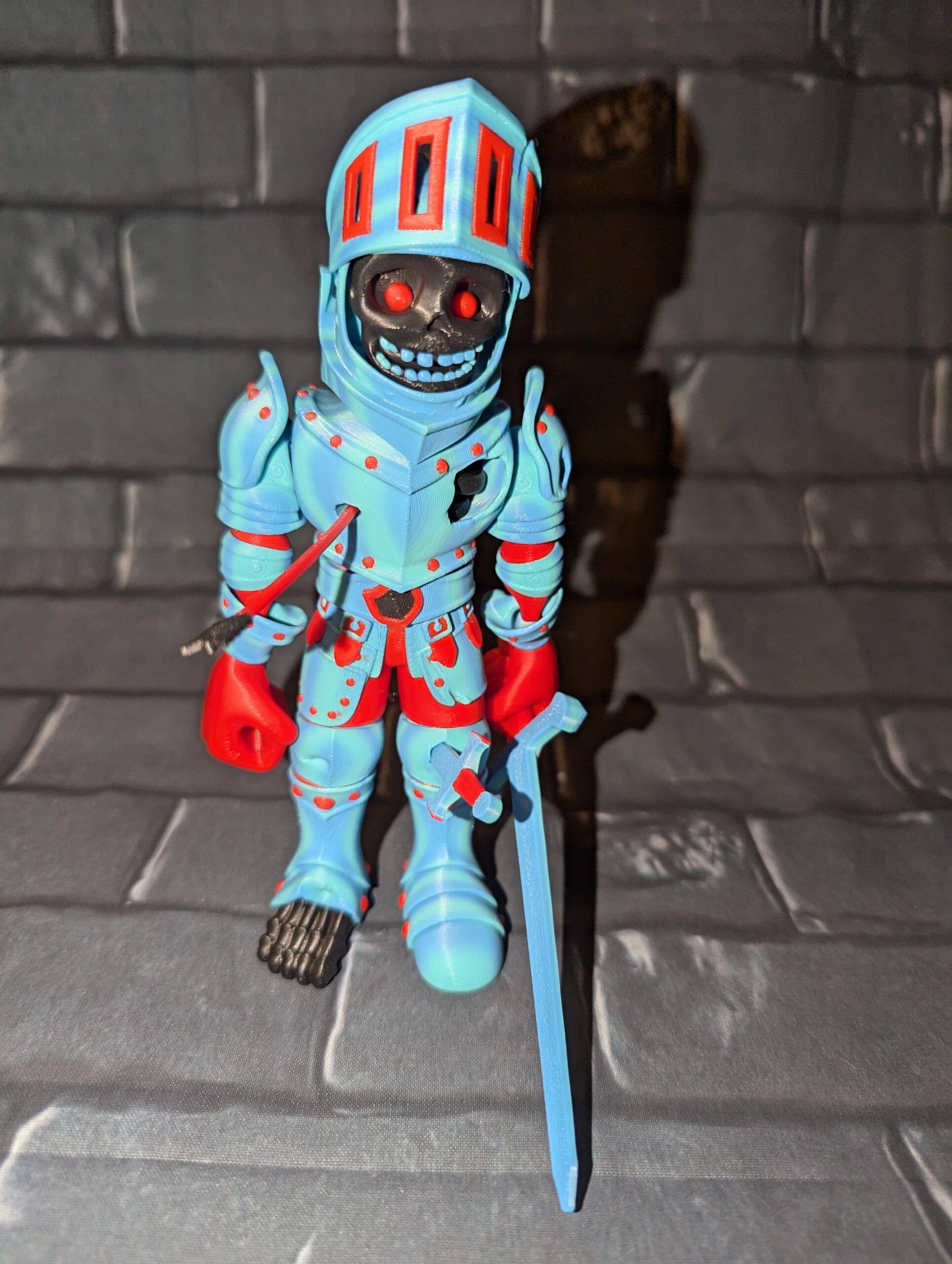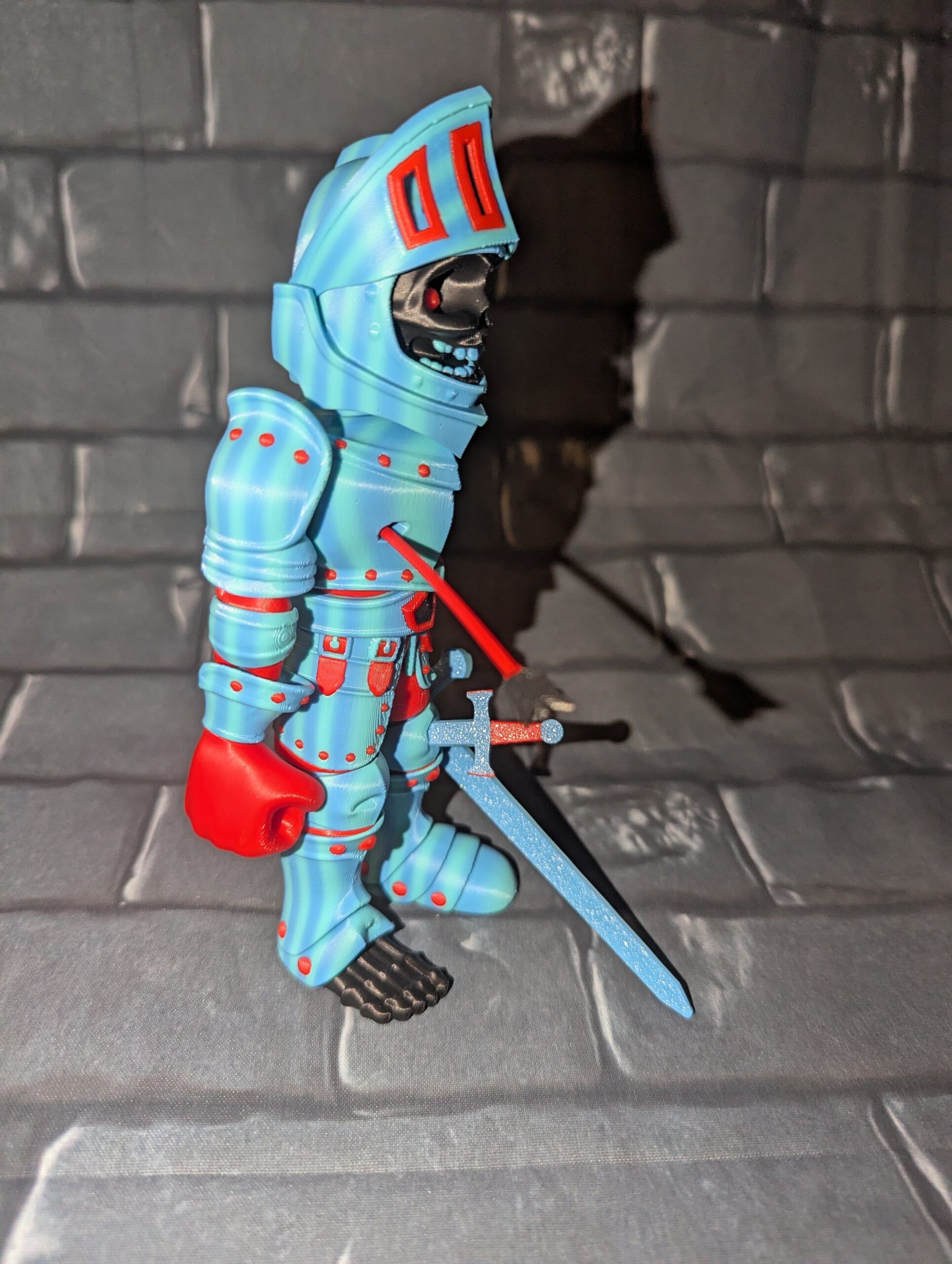 Royal the Knight can stand on his own and has several pieces that can be placed in different areas of his armor!