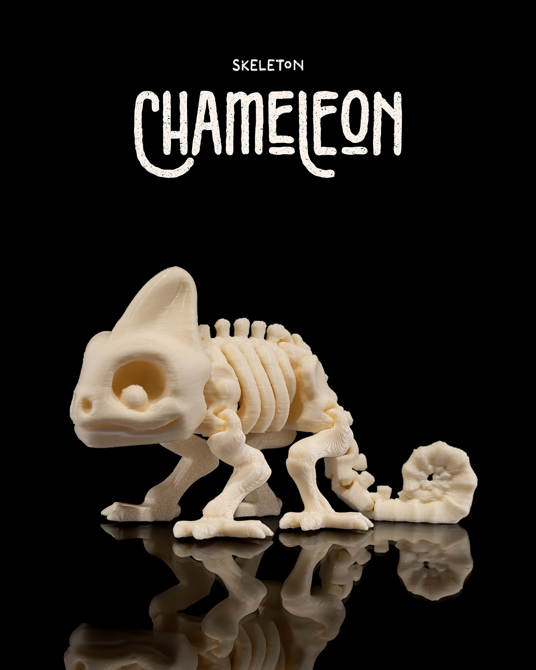 Add an exotic twist to your spooky setup with this 3D-printed skeleton chameleon! Featuring intricate details of a chameleon’s skeletal structure, this miniature figure brings a unique and eerie charm to your Halloween decorations. Its bone-like appearance, combined with its quirky design, makes it a standout piece for shelves, desks, or as part of a Halloween display.