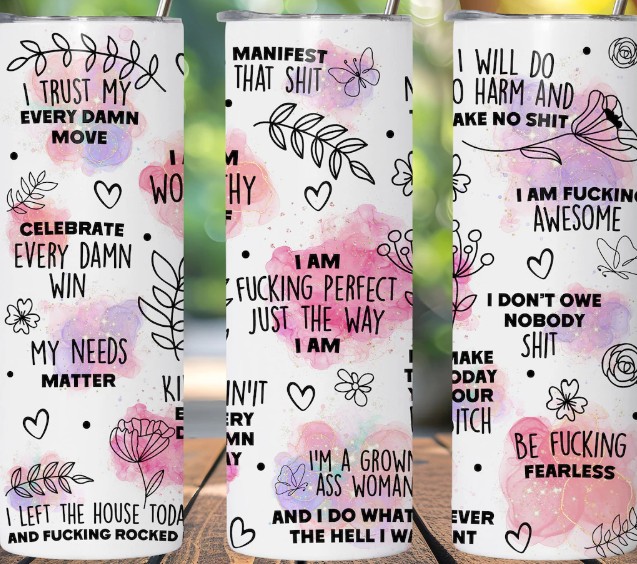 We have x2 affirmation designs currently, including a cheeky ‘sweary’ design, which we have ourselves