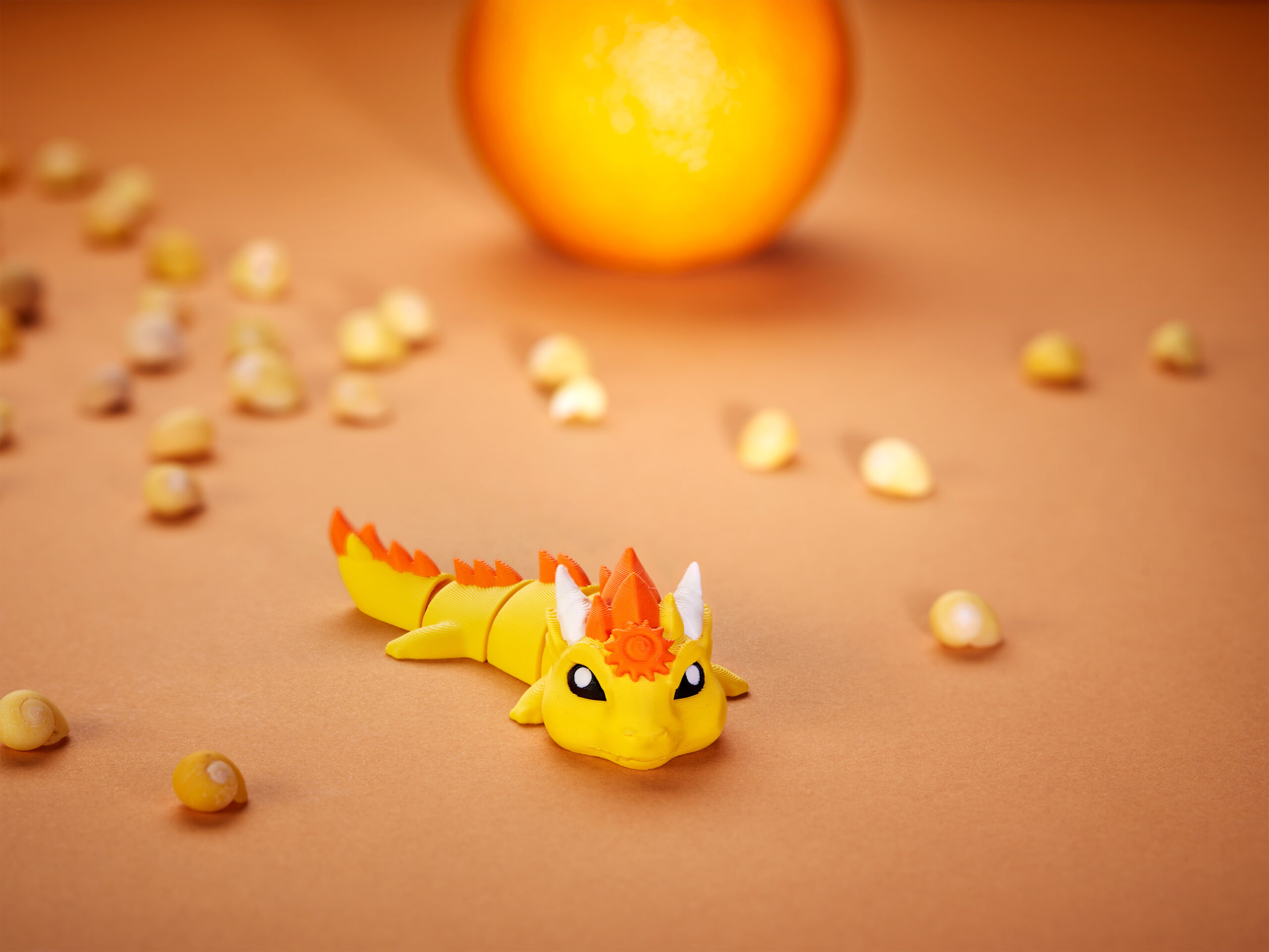 Say hello to your new favorite fantasy friend! This cheerful little dragon is full of personality, with a flexible body and a magical sun emblem that adds a touch of whimsy. Whether it’s curled up on your desk or hanging out with your keys, it’s sure to bring smiles wherever it goes.