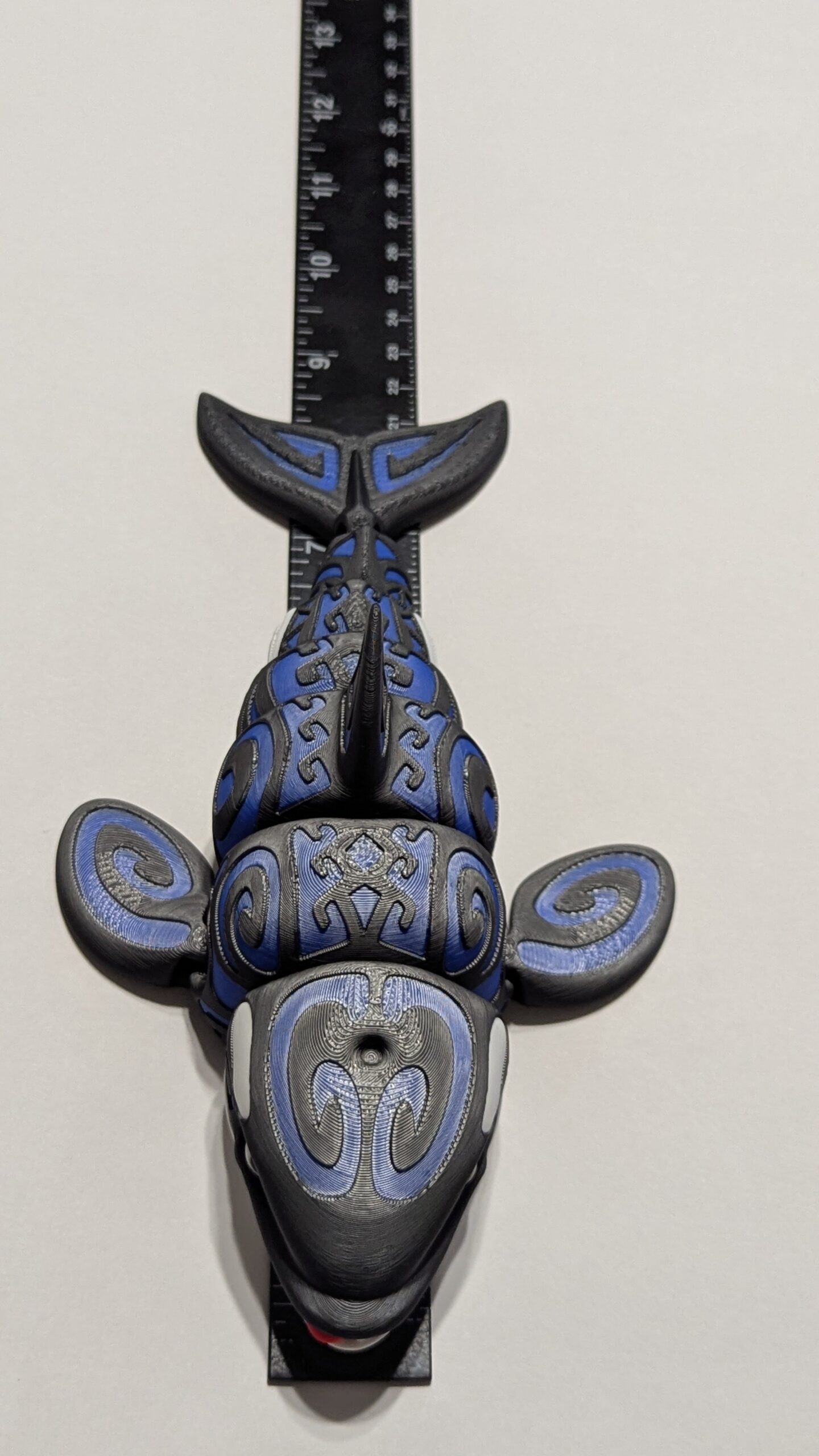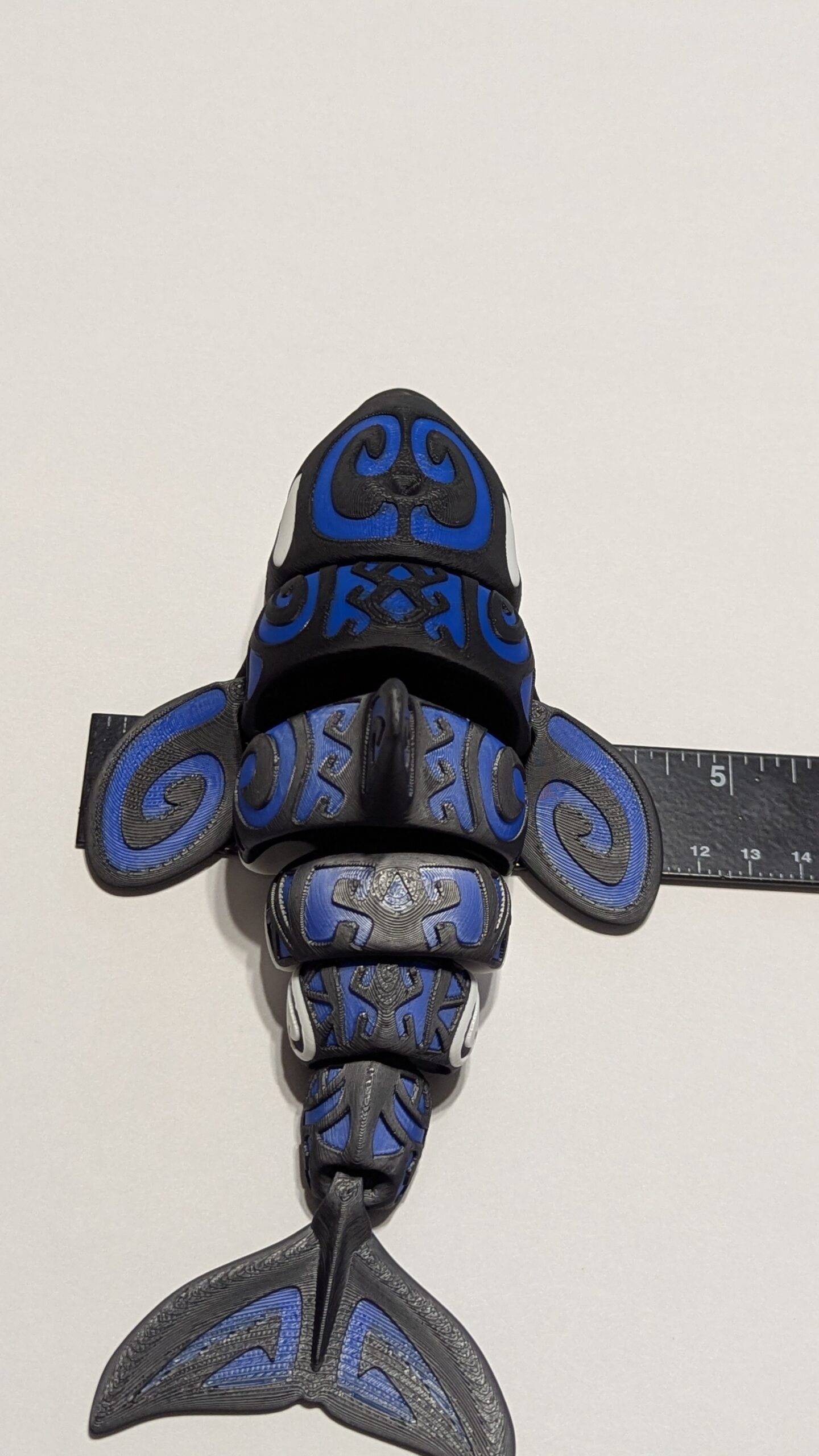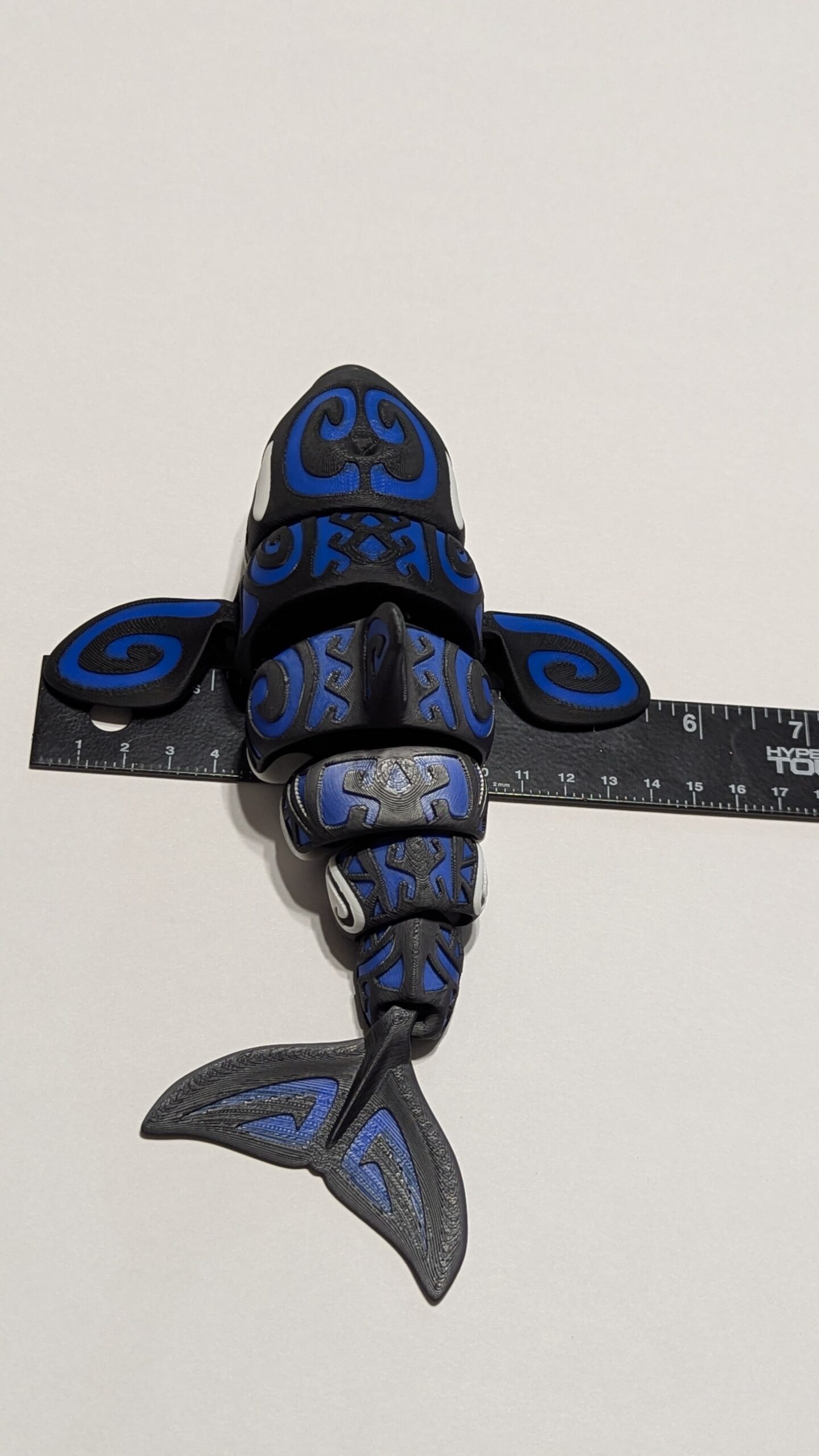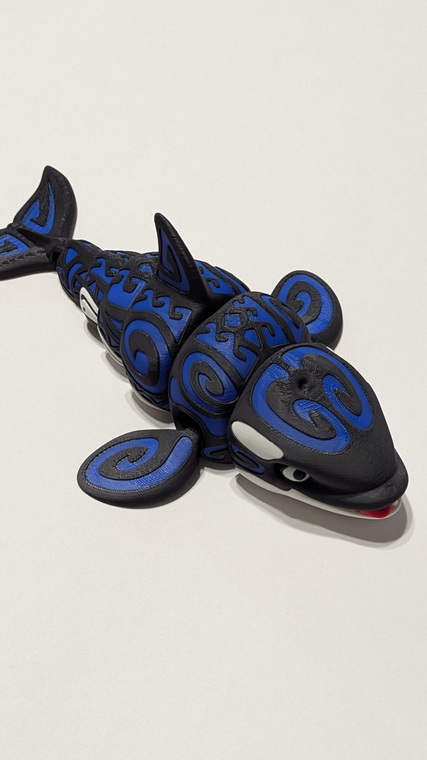 Tattooed Orca by Flexi Factory. Accent color is Bambu Labs Blue PLA.