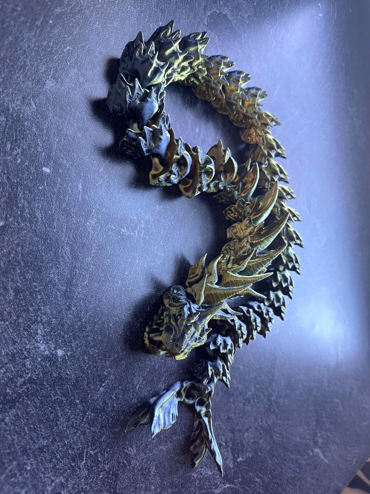 The Ouroboros is a mythological concept that has appeared in many cultures throughout the years, and the Jörmungandr, also known as The Midgard Serpent, is the representation in Norse mythology. It symbolizes the circle of life and death, a giant serpent that is long enough to wrap around the world. Articulated 3D Serpent that will bite on to its own tail. Sprawled out this serpent is 29″ long!