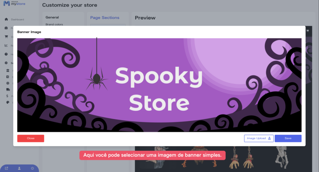 Finalmente, carregue uma imagem de banner para sua loja. Clique na aba “Banner Image” e selecione a imagem que você quer usar como banner da sua loja.